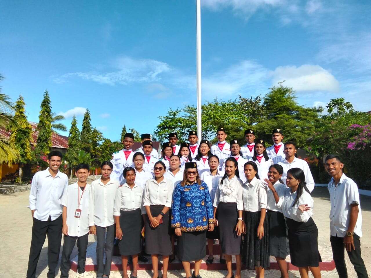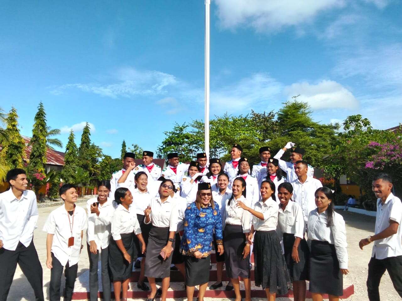 Foto Bersama Kepala Sekolah, dewan guru dan Paskibraka SMA PGRI DOBO 2025