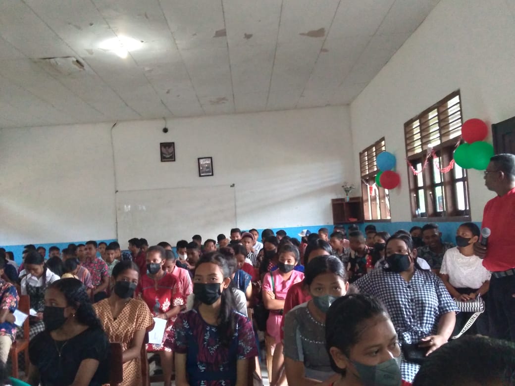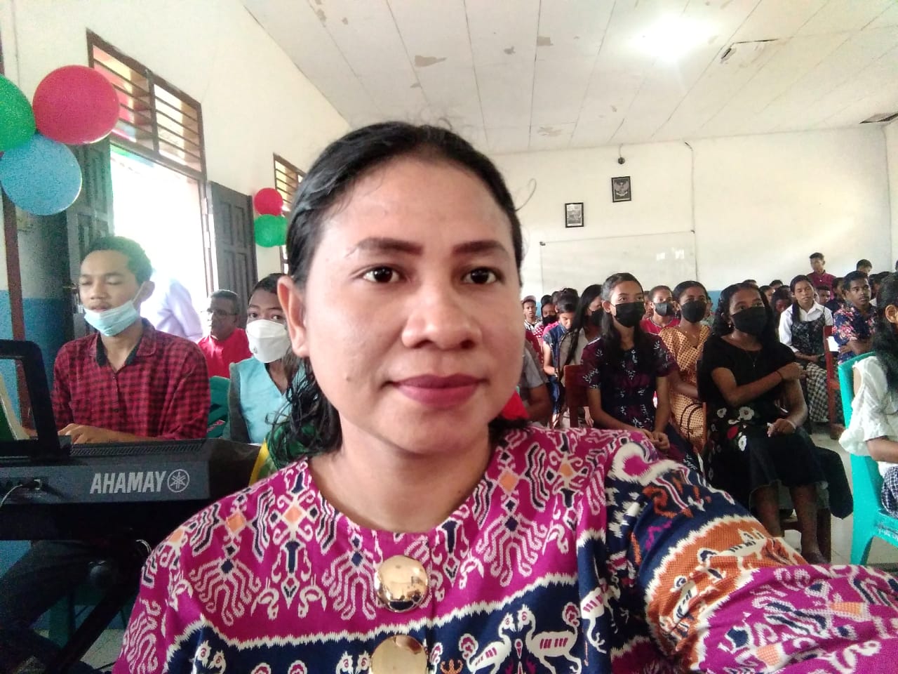 Ibu pendeta Noya sedang membawakan firman pada ibada natal sekolah SMA PGRI DOBO