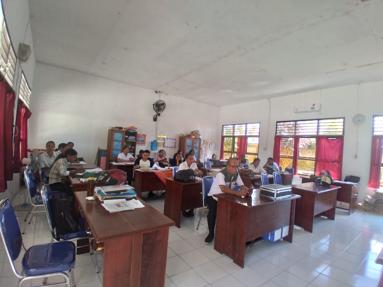 para guru SMA PGRI DOBO sedang mendengarkan arahan kepala sekolah terkait persiapan natal sekolah