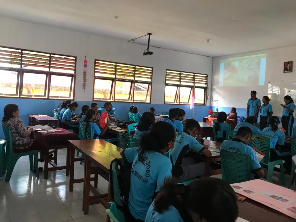 para siswa sedang mempresentasikan tugas yang diberikan oleh guru mata pelajaran