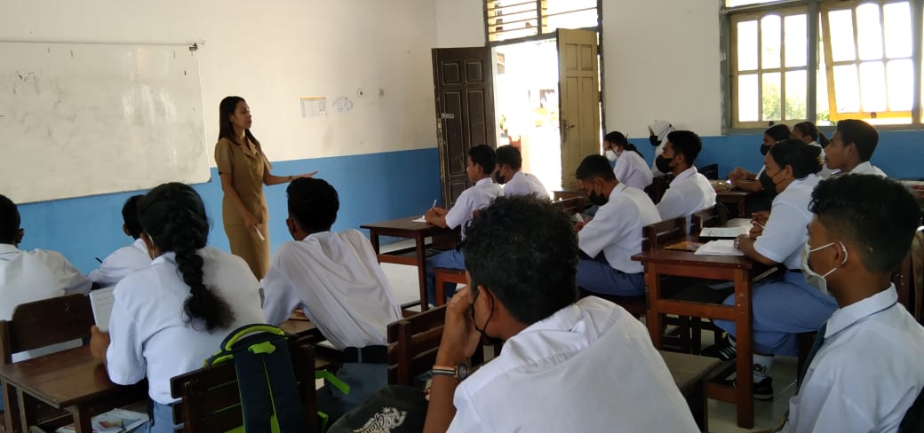ibu Kia sedang menyampaikan Tujuan Materi Pembelajaran