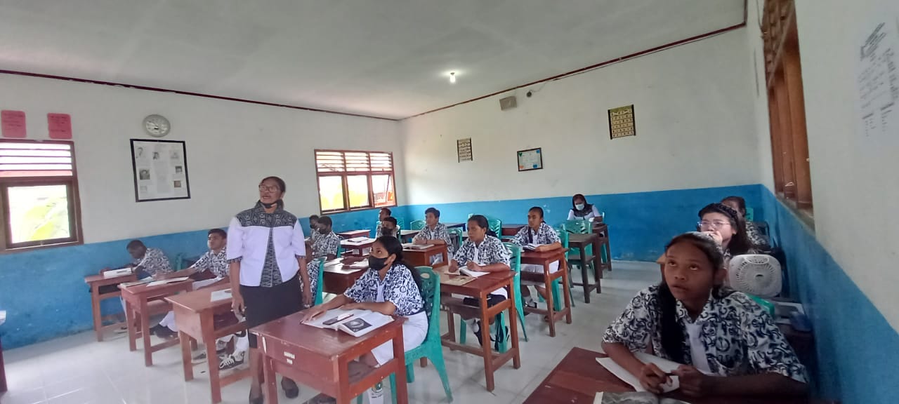 guru sedang memberikan kesempatan kepada siswa untuk literasi