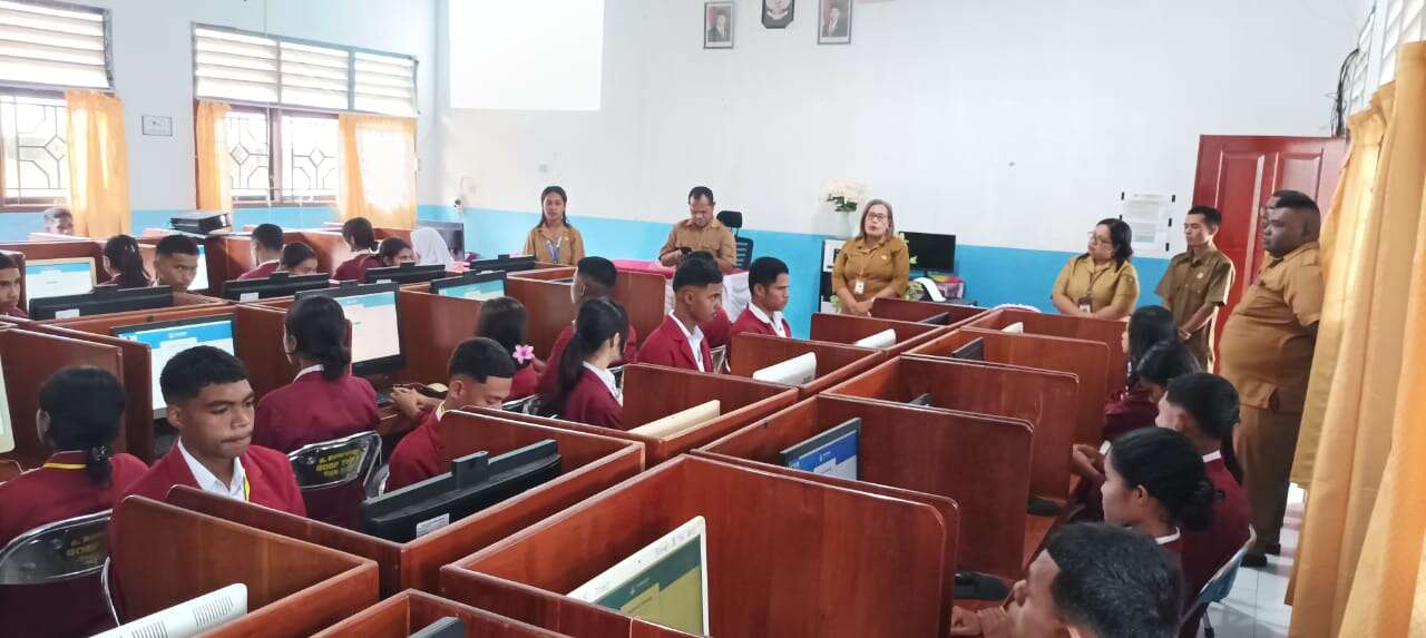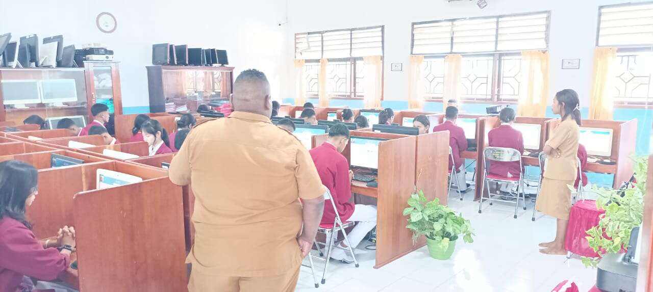 Para siswa, Pengawas, Proktor, Teknisi dan Panitia Sedang mengikuti Pembukaan oleh ibu Dr. Sarlota Singerin, S.Pd. M.Pd