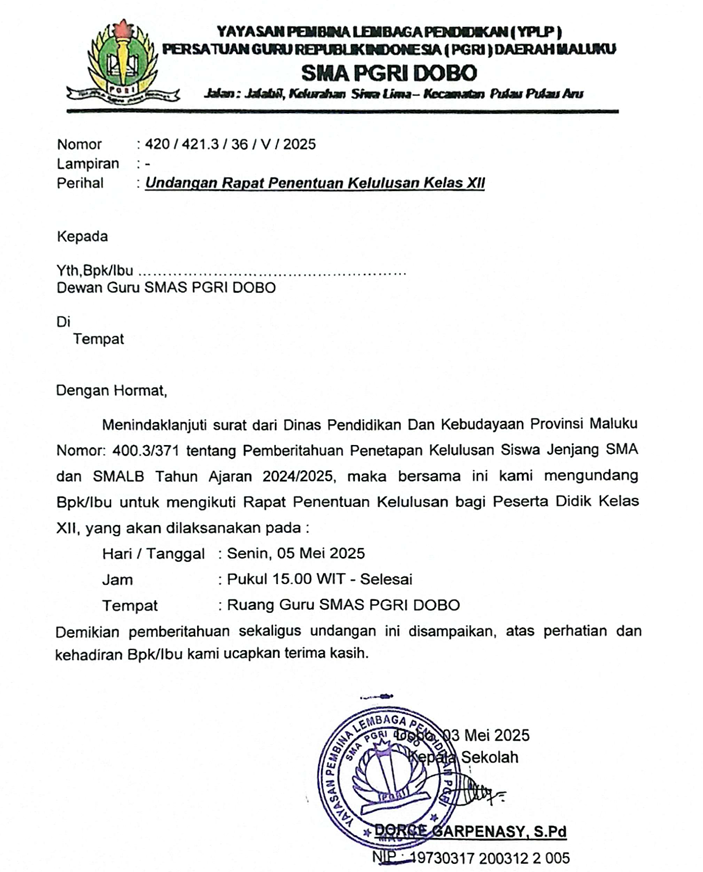 UNDANGAN RAPAT PENENTUAN KELULUSAN KELAS XII TAHUN PELAJARAN 2024/2025